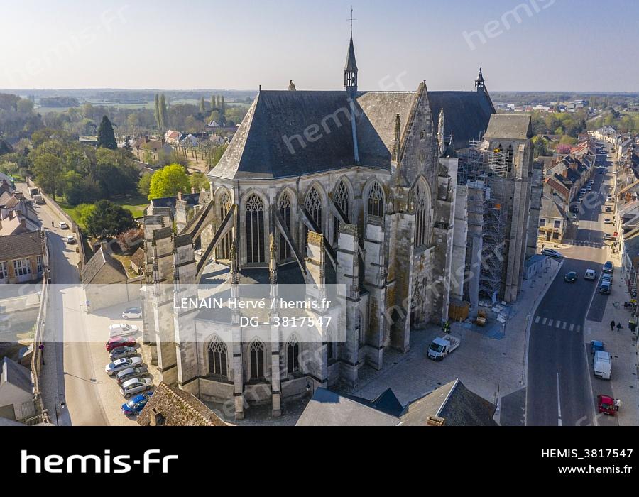 France, Loiret, Loire Valley listed as World Heritage by UNESCO, Clery Saint Andre, Basilica of Notre Dame de Clery Saint Andre (aerial view)
