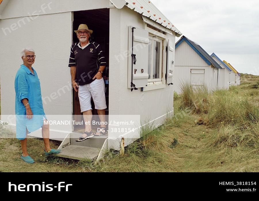 France, Manche, Gouville-sur-Mer, the beach huts of Gouville, Jacques Dufy and friends