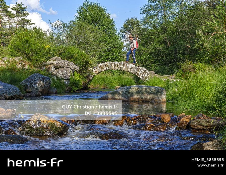 France, Creuse, Limousin, Parc Naturel Regional de Millevaches (Millevaches Regional Natural Park),, Gentioux Pigerolles, Senoueix romanesque bridge over the Thaurion or Taurion