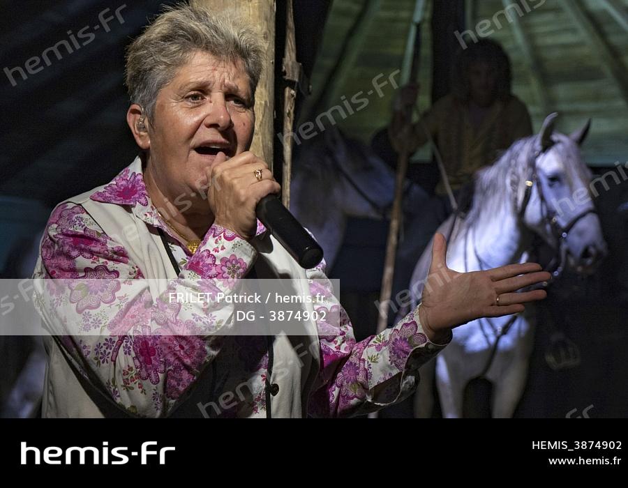 France, Gard (30), Camargue, Franqueveaux, manade Martini, Regine Pascal chante la Camargue et les gardians