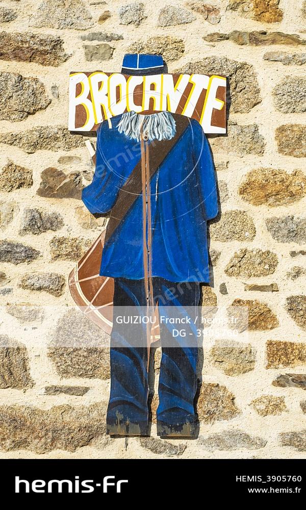 France, Ille-et-Vilaine, Combourg, Maison du Tambour de Ville, sign of a second hand shop