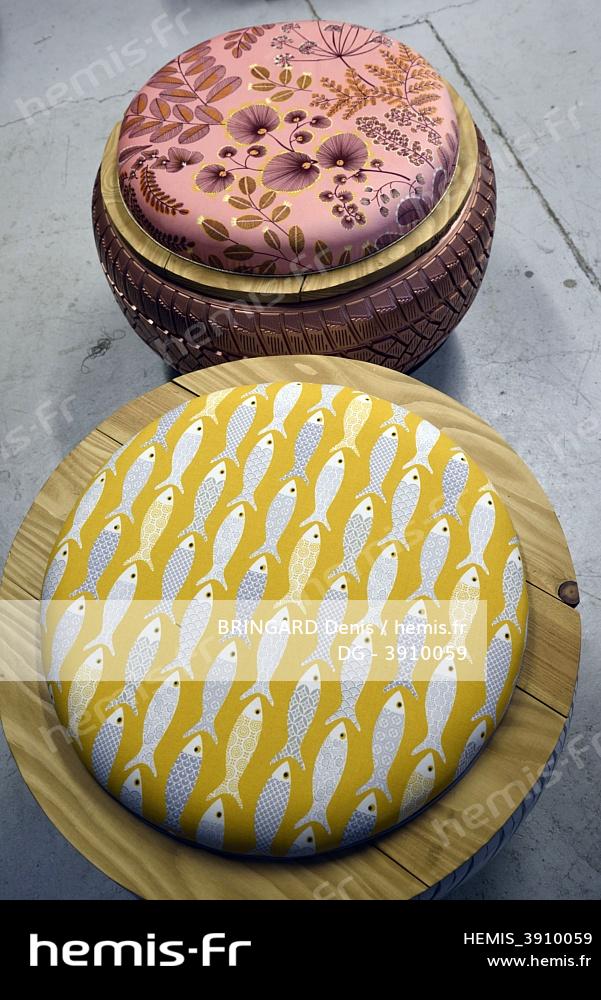 France, Jura (39), Poligny, Très Pneu pour Moi, fabrication de petit mobilier en pneus recyclée, poufs, tables
