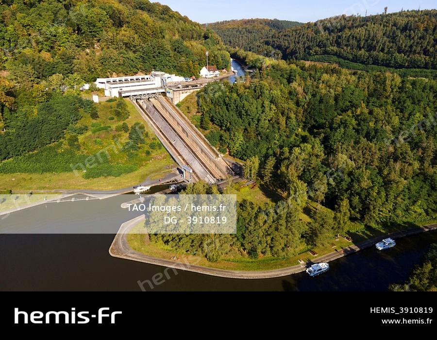 France, Moselle, Artzviller, the Saint-Louis-Arzviller inclined plane is part of the Marne-Rhine Canal (Canal de la Marne au Rhin) and enables the canal to cross the Vosges Mountains, it replaces 17 locks