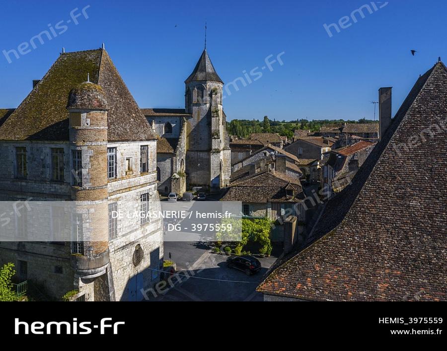 France, Dordogne, Purple Perigord, Issigeac, Town of Issigeac (aerial view)