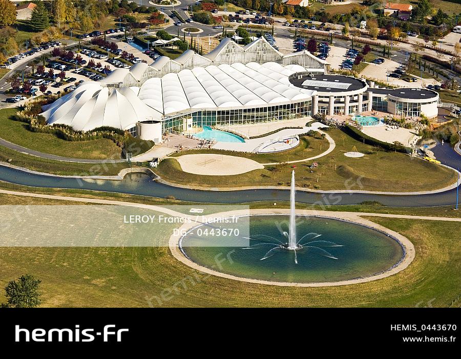 France, Charente Maritime, Jonzac, Les Antilles is a water fun center (aerial view)