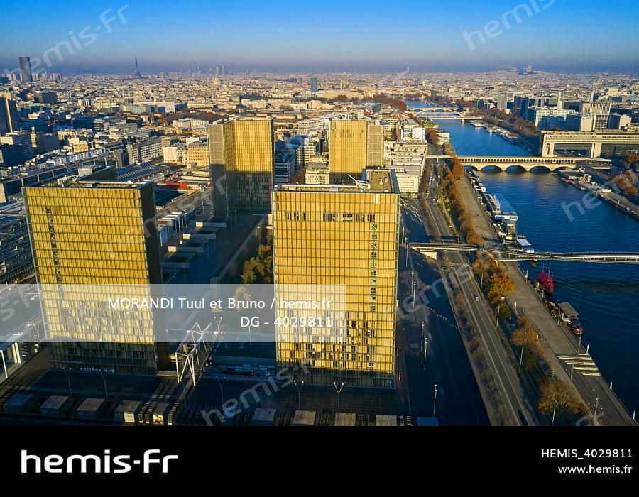 France, Paris, Quai François Mauriac, the National Library of France (BNF), François Mitterrand site by architect Dominique Perrault (aerial view)