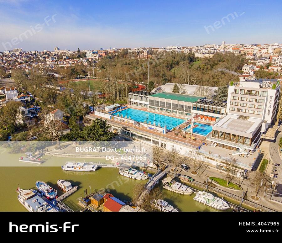 France, Val-de-Marne (94), Nogent-sur-Marne, la piscine et le port de plaisance pendant la crue de la Marne (vue aérienne)