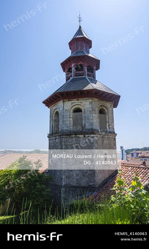 France, Pyrénées-Atlantiques (64), Pays Basque, Ciboure, Saint Vincent church bell tower