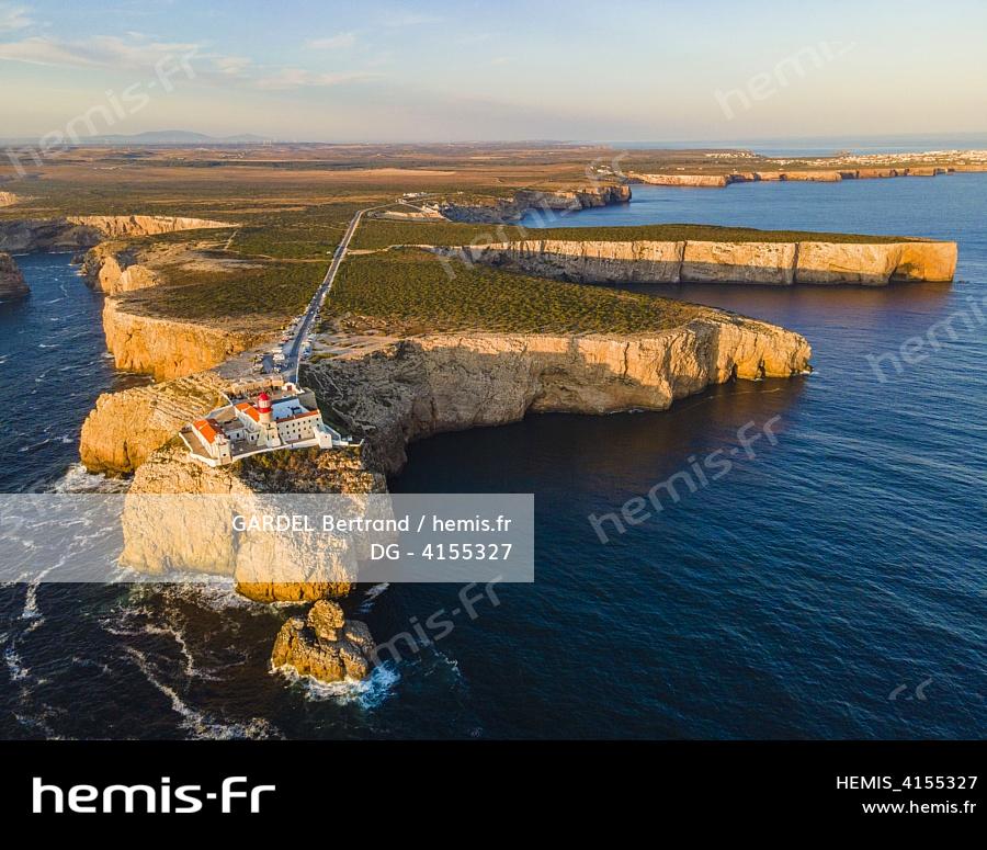 Portugal, Algarve, Sagres, the lighthouse of Cape Saint Vincent, (Cabo de Sao Vicente) (aerial view)