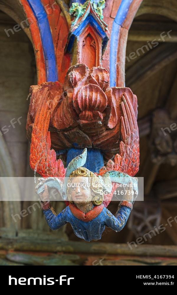 France, Morbihan, Le Faouët, 15th century Saint-Fiacre chapel, flamboyant style polychrome wooden rood screen