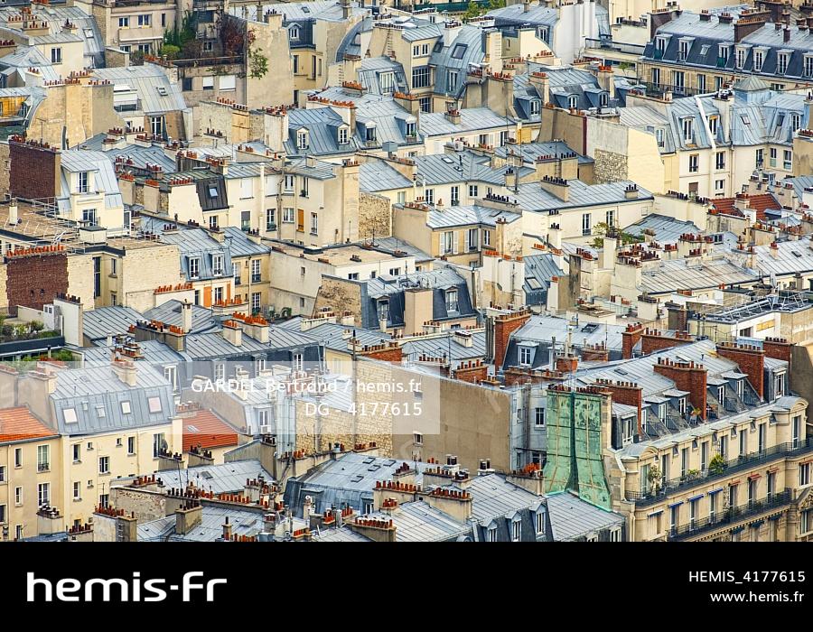 France, Paris, zinc roof of Paris, Haussmannian building, 16th arrondissement