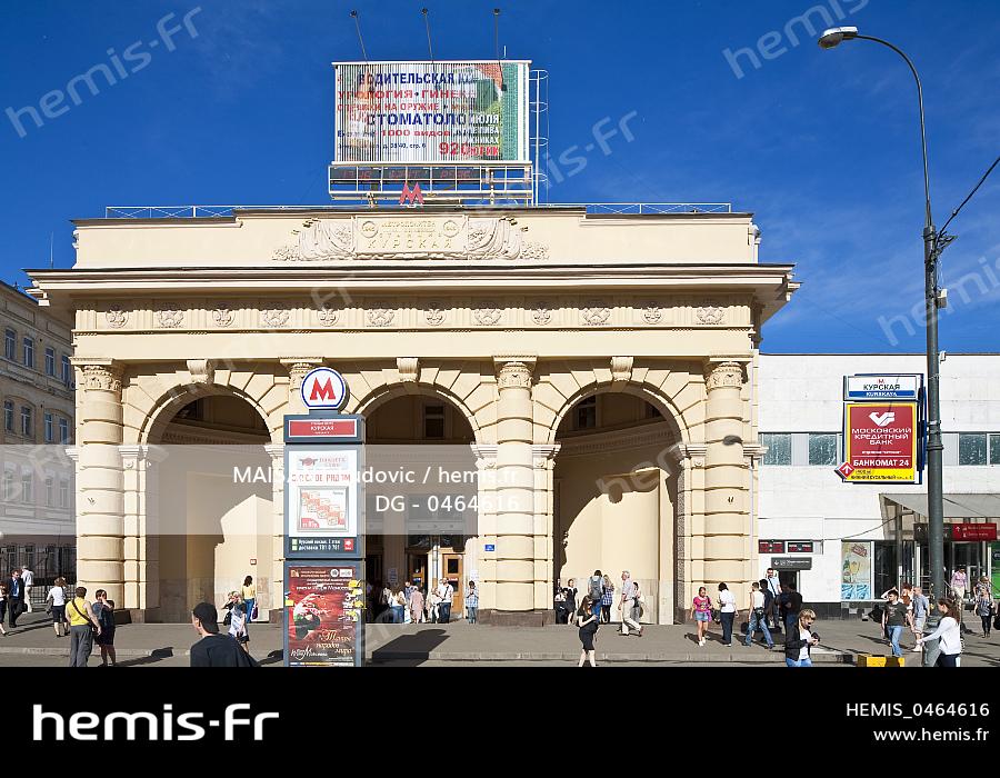 Russie, Moscou, entrée de la station de métro Kurskaya datant de 1938