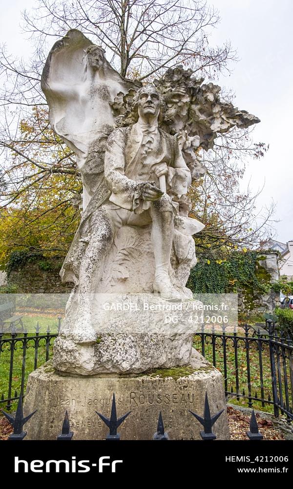 France, Oise, Ermenonville, statue of Jean Jacques Rousseau