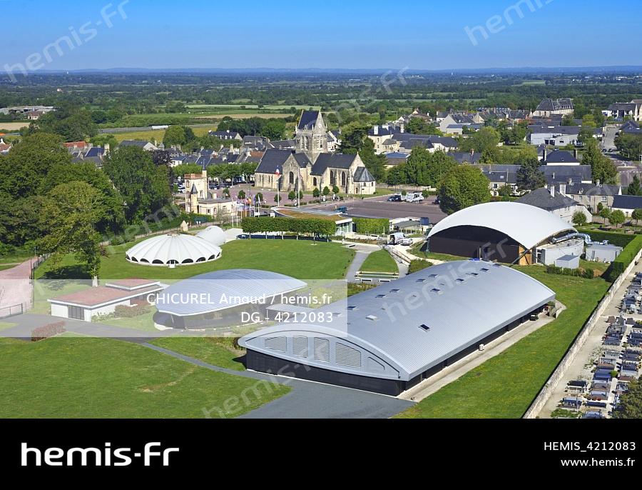 France, Manche, Sainte Mère Eglise, the Airborne museum (aerial view)
