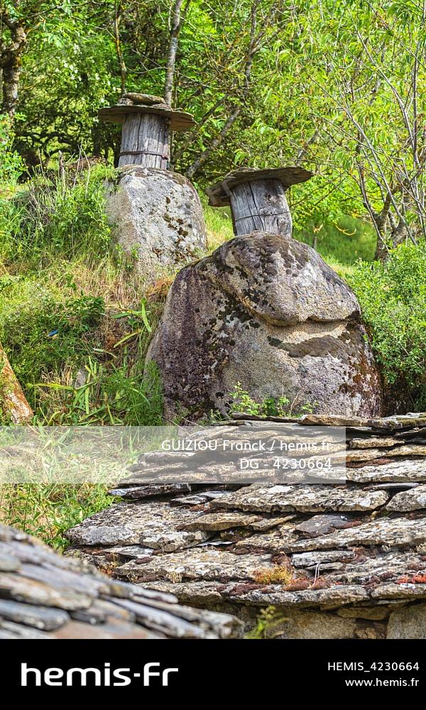 France, Lozère (48), Ispagnac, hameau des Combettes, rucher-tronc, refuge traditionnel de l'abeille noire des Cévennes