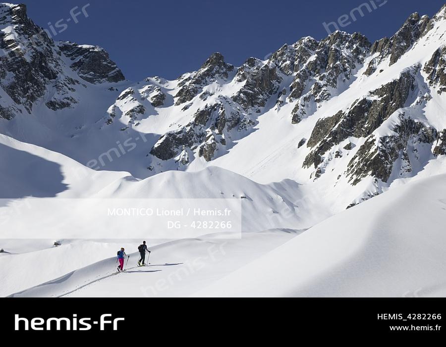 France, Savoie, Belledonne massif, Tepey valley, ski touring above the hamlet of Valmaure