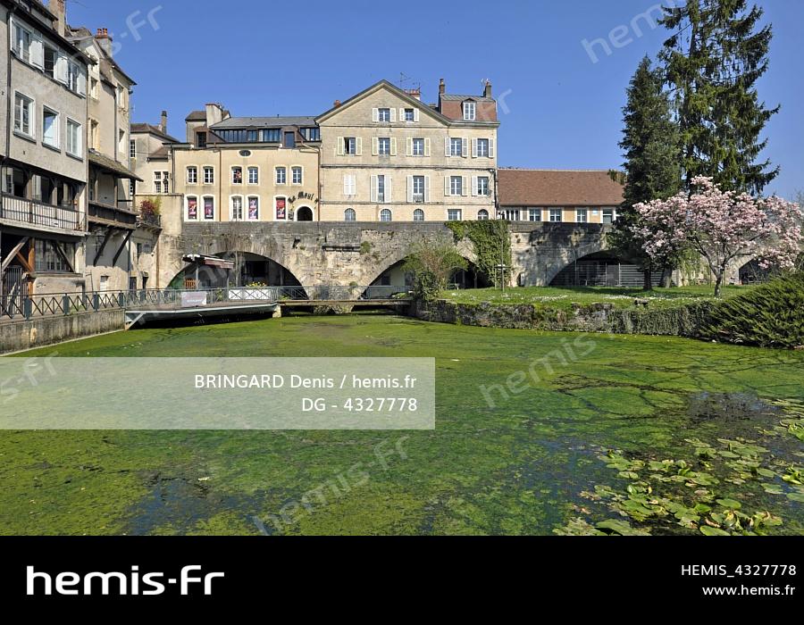France, Jura (39), Dole, canal des Tanneurs, le grand moulin des tanneurs, devenu restaurant