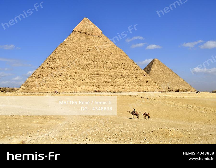 Egypt, Cairo, Giza, listed as World Heritage by UNESCO, the Khafra and Cheops pyramids