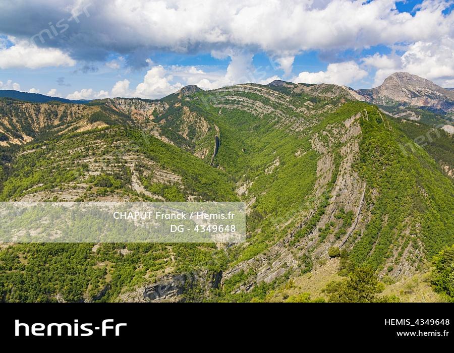 France, Alpes-de-Haute-Provence, Geological Nature Reserve of Haute Provence, La Javie; Velodrome d'Esclangon panarama and lame de Facibelle