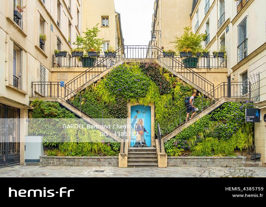 France, Paris, Drinking Water Fountain of the Vegetated Staircase Rue Rollin, street Art