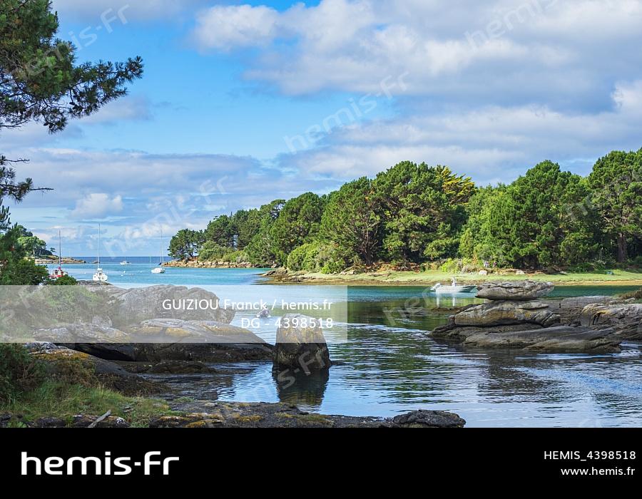 France, Finistere, Tregunc, Anse de Moulin-Mer and Minaouët river on the coastal footpath or GR 34 long-distance path