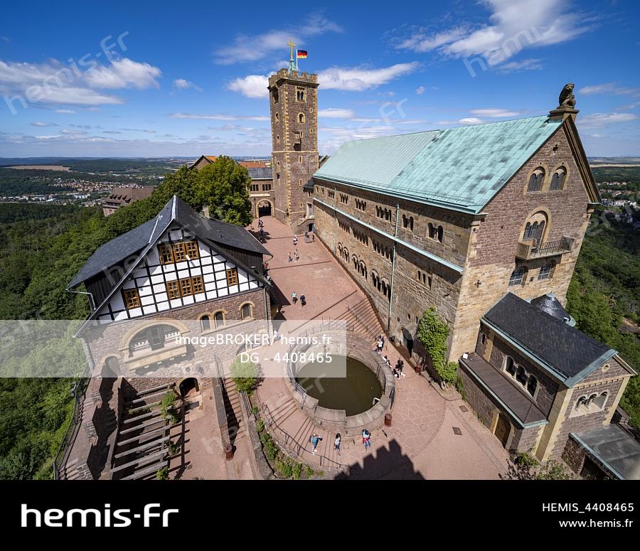 Wartburg, castle courtyard with fountain and south tower, Eisenach, Thuringia, Germany, Europe