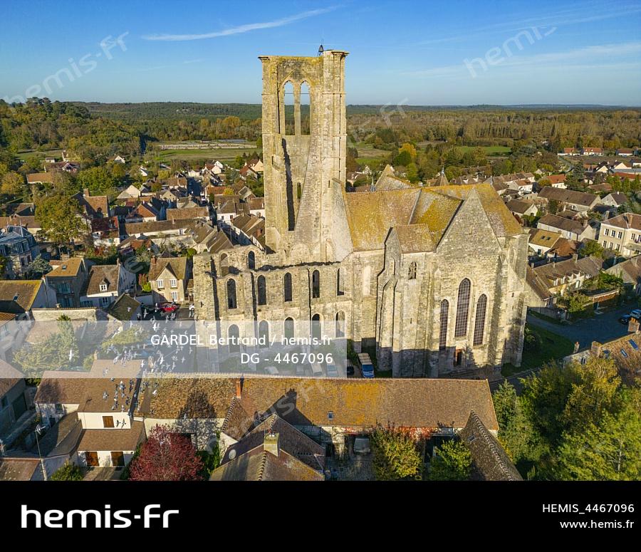 France, Seine-et-Marne (77), forêt de Fontainebleau, Larchant, Basilique Saint-Mathurin (vue aérienne)
