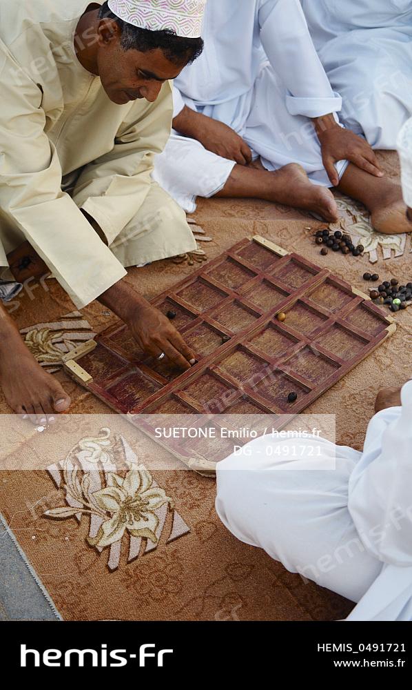 Sultanate of Oman, Arabian Peninsula, Sur, harbour playing wari board game