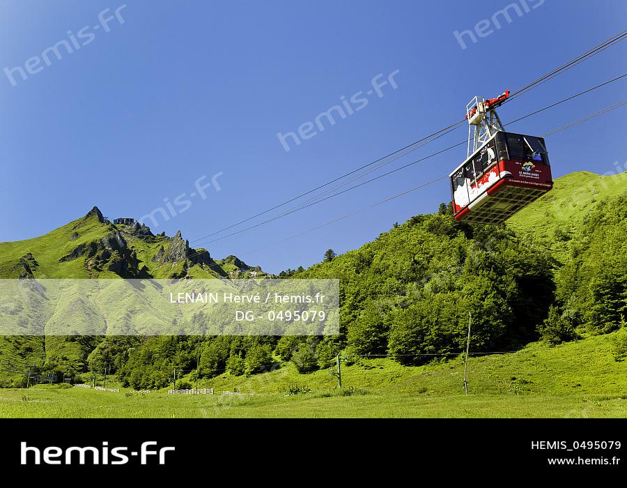 France, Puy de Dome, Parc Naturel Regional des Volcans d'Auvergne (Auvergne Volcanoes Natural Regional Park), Massif of Sancy, resort of Mont Dore, cable car for the summit of Sancy