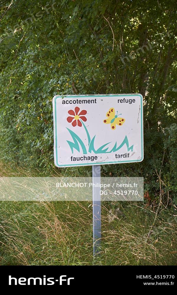 France, Mayenne (53), Chémeré-le-Roi, Panneau fauchage tardif, refuge de biodiversité