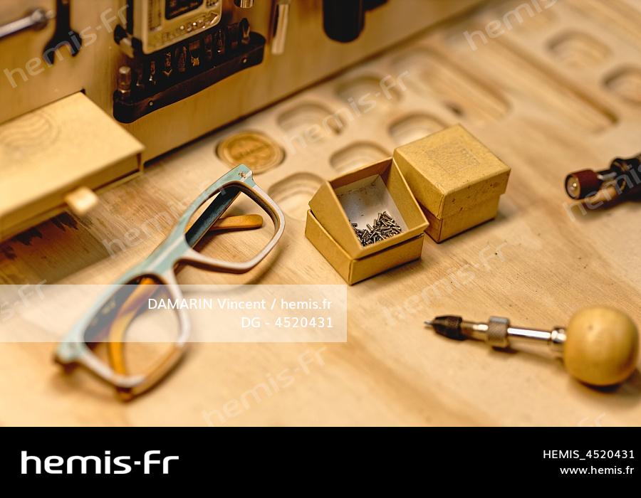 France, Meurthe et Moselle, Velaine-sous-Amance, 7PLIS, glasses and accessories made from old used skateboard decks