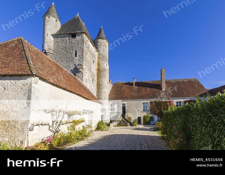 France, Indre-et-Loire (37),Bridoré, château de Bridoré (XVème siècle), le donjon et la cour intérieure