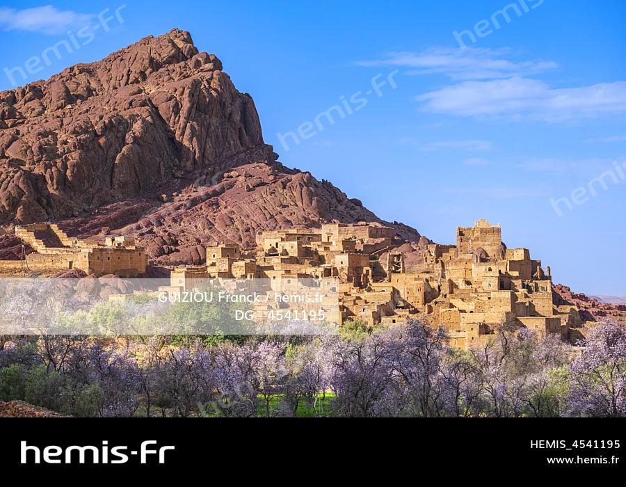 Morocco, province of Taroudant, Sidi Hsaine, old village of Timersit in the middle of the almond trees in bloom