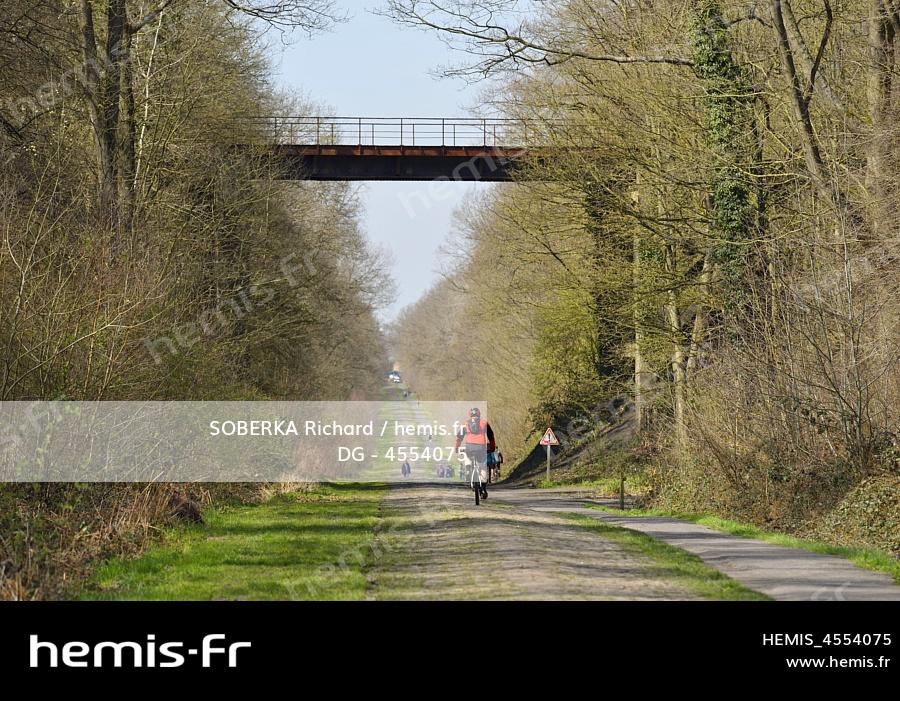 France, Nord (59), Wallers, route pavée appelée la trouée d’Aremberg où passe la course cycliste Paris Roubaix, passage sur les pavés de la trouée de Wallers Aremberg