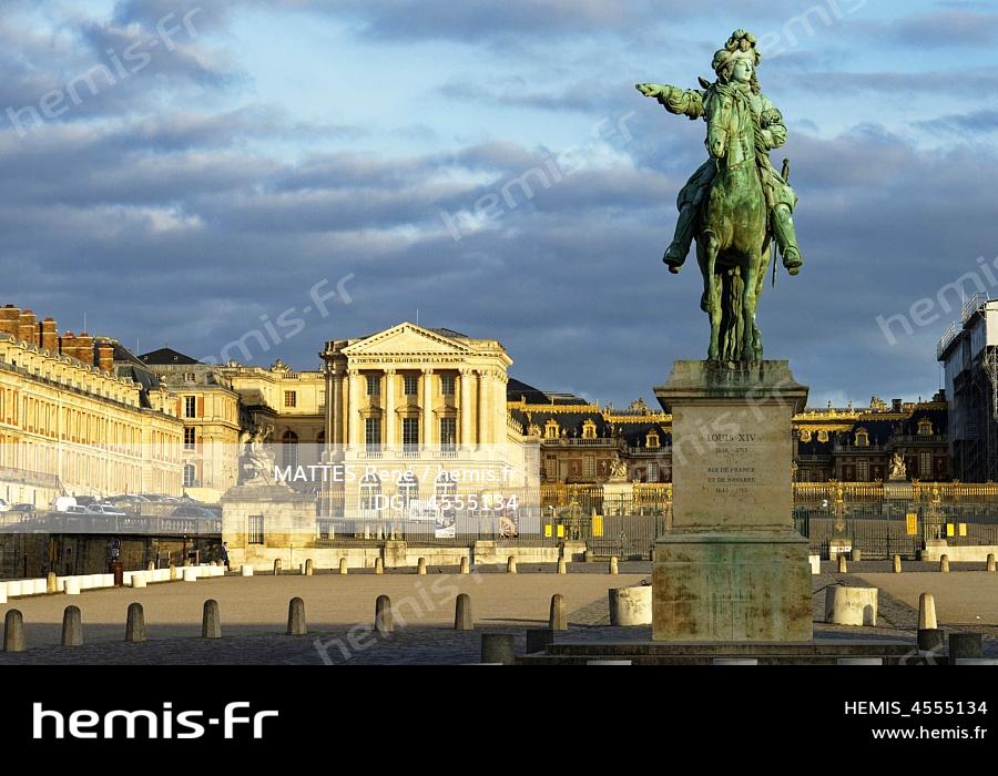 France, Yvelines, Versailles, park of the Palace of Versailles classified world heritage by the UNESCO, equestrian statue of Louis XIV