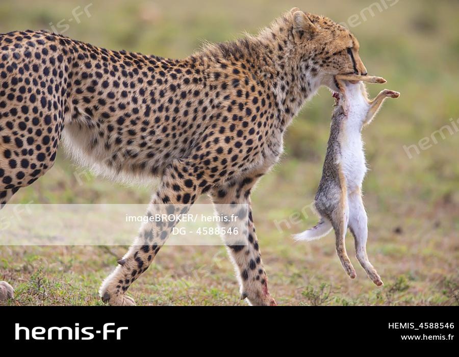 Le Guépard (Acinonyx jubatus) avec cap lièvres (Lepus capensis) Kenya