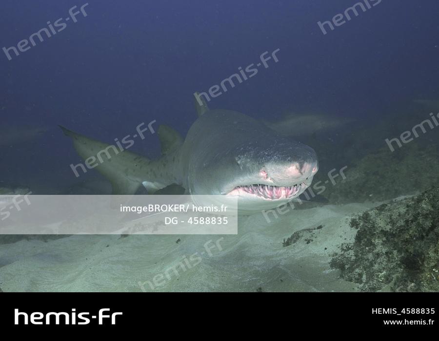 Portrait de requin tigre de sable (Carcharias taurus) . Site de plongée Aliwal Shoal, Umkomaas, KwaZulu Natal, Afrique du Sud, Afrique