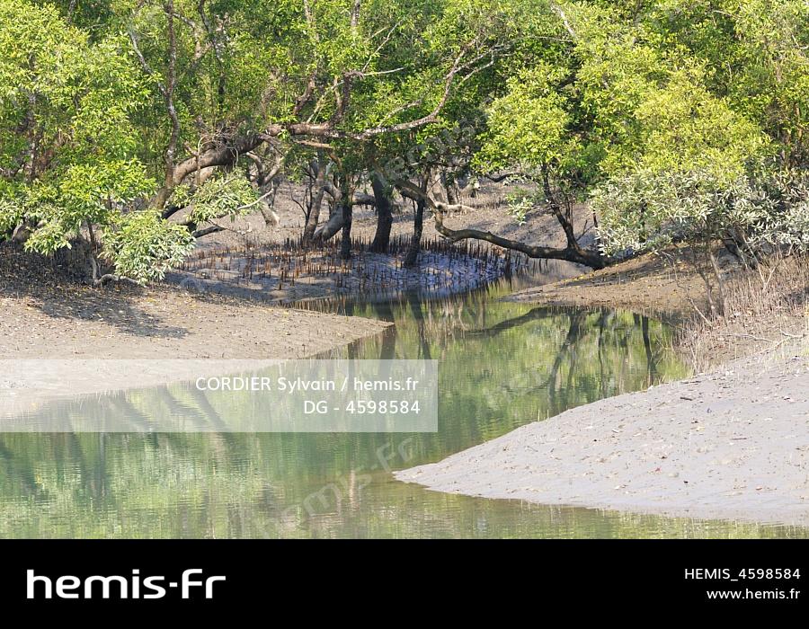 Inde, Golfe du Bengale, Delta du Gange, Sunderbans, marée basse sur un bras d'eau