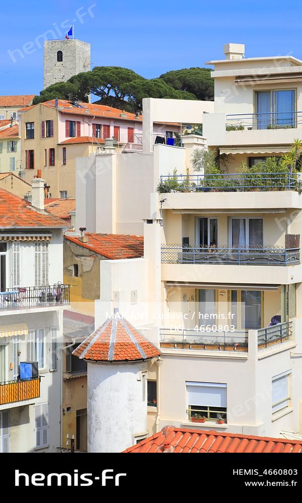France, Alpes-Maritimes (06), Cannes, quartier du Suquet avec au sommet le château de la Castre
