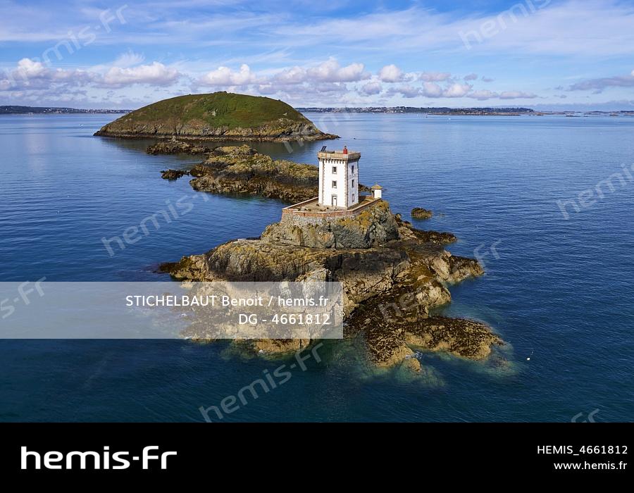 France, Cotes-d'Armor (22) Plouezec, pointe de Bilfot, l’Ost-Pic lighthouse (aerial view)