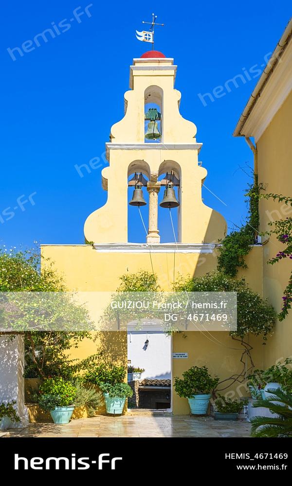 Grèce, Iles Ioniennes, île de Corfou, Paleokastritsa, le monastère de Paleokastritsa du XIIIe siècle