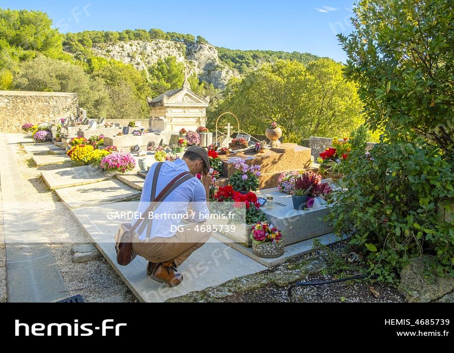 France, Bouches du Rhone, Marseille, La Treille, the cemetery, tomb of Marcel Pagnol. Damien, "Authentic Pagnol" hiking guide approved by the Pagnol family