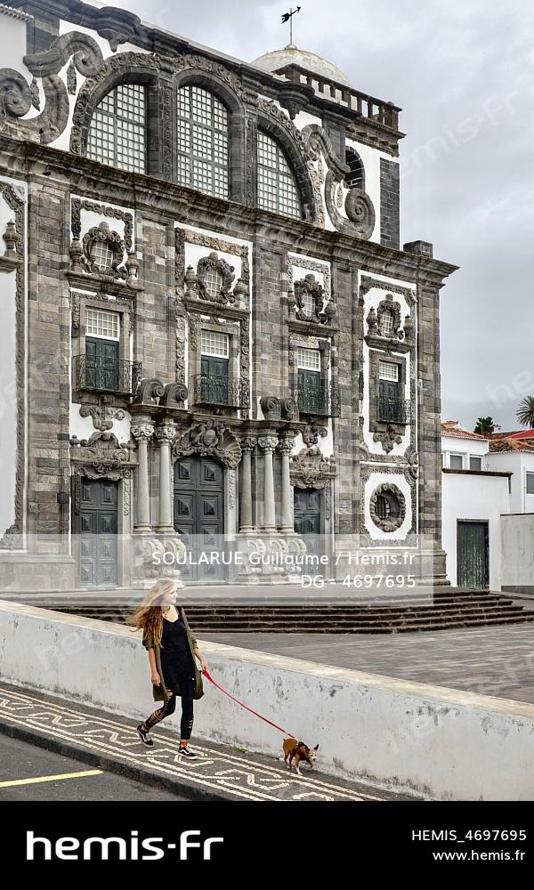 Portugal, archipel des Açores, ile de Sao Miguel, Ponta Delgada, musée d'art sacré Carlos Machado à la façade baroque en pierre basaltique