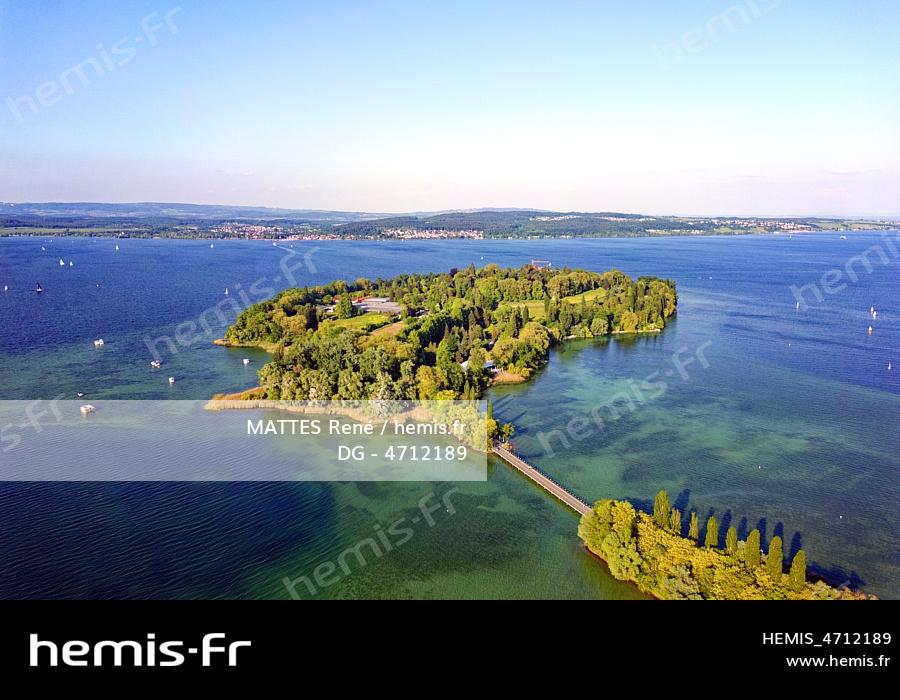 Germany, Bade Wurttemberg, Lake Constance (Bodensee), Mainau Island, garden island on Lake Constance (Aerial view)