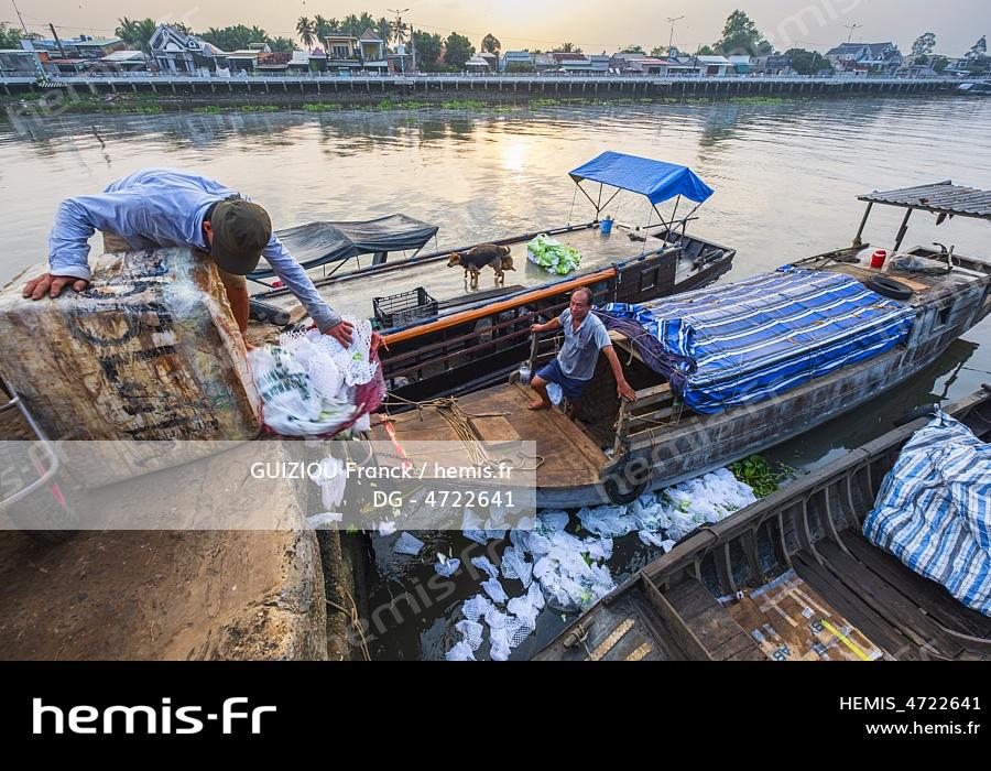 Vietnam, Mekong Delta, Cai Be, the banks of the Kinh 28 canal which flows into the Mekong river, plastic waste is thrown directly into the canal