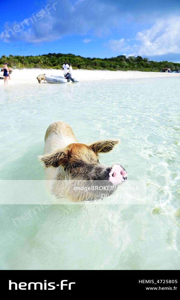 Swimming Pig, Big Major Cay, Exuma Cays, Bahamas, Central America