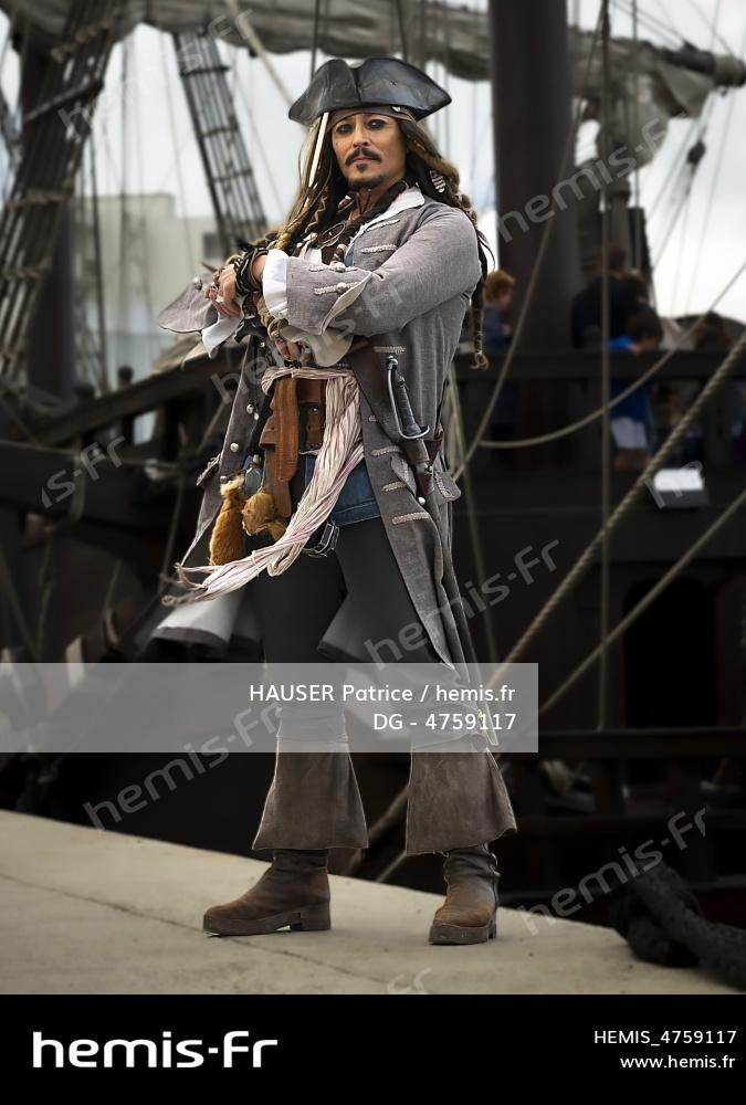 France, Gironde, Bassin d'Arcachon, Boat Show, April 2023, Jax Parroh, lookalike of Captain Jack Sparrow, hero of Pirates of the Caribbean