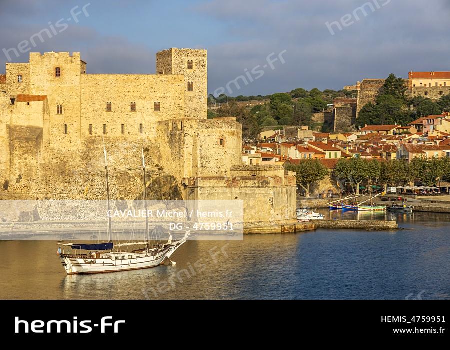 France, Pyrénées-Orientales, Côte Vermeille, Collioure, Royal Castle wall