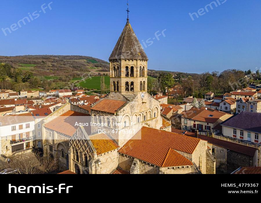 France, Puy de Dome, Chauriat, labeled Petites Cités de Caractère® (Small Towns with a Remarkable Heritage), Saint Julien church (aerial view)