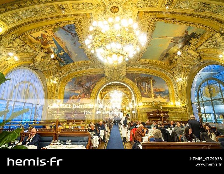 France, Paris, Le Train bleu is a gourmet restaurant in neo baroque and Belle Epoque style from the 1900s located on the 1st floor of the hall of the Paris Gare de Lyon station, listed as a historic monument